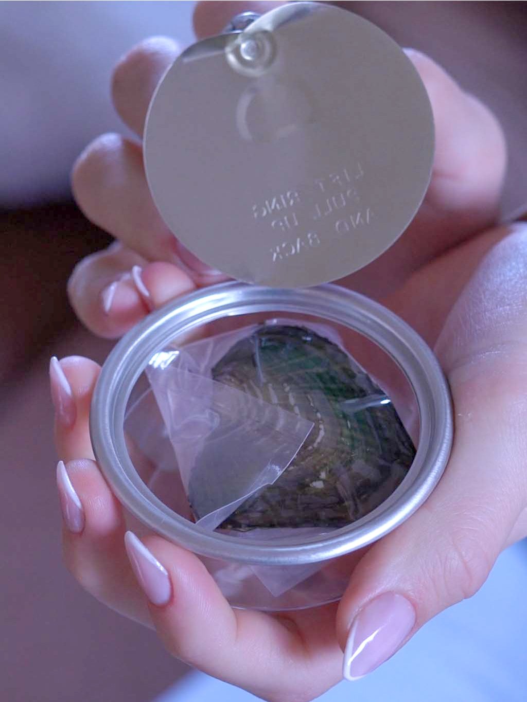 Tenyésztett gyöngykagyló, amely gyöngyöt rejt a belsejében. Minden gyöngy egyedi, és rendkívüli odafigyeléssel készült. A gyöngykagylókat